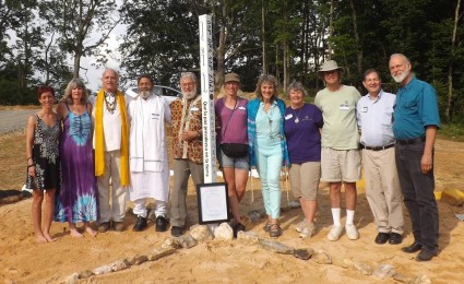 Around the Peace Pole at the Medicine Wheel (from left to right): Rev. Devon Rachelle, Reverend Laura George, J.D., His Excellency Reverend Patrick McCollum, Guruji Sri Yogacharya Arun Kumarji, Glen T. Martin, Ph.D., Eugenia, Ruth Broyde Sharone, Noel Marshall, Ph.D., Bob Warner, Reverend Don Lansky, and Chris Van Cleave