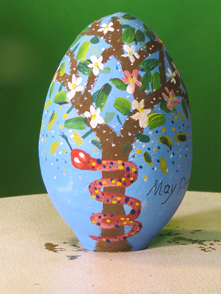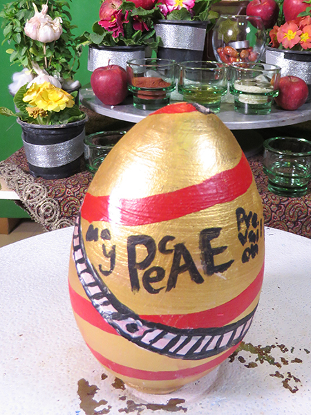 Eggs are painted in the most beautiful way possible and placed on the table. This year, at Nikoo Pendar Educational Center, the eggs were designed with the theme of peace and the symbol of the Year of the Snake in the hope that peace will be established in the world.