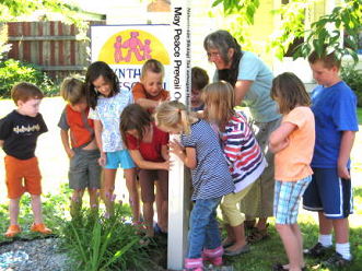 September 1, 2009  This simple Peace Pole sits in a garden where the Sligo Creek Trail  meets New Hampshire Avenue.
