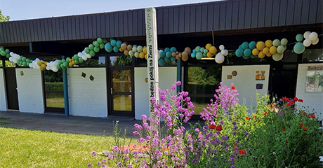 Peace Pole planted on Public Pool Grounds in Gimbsheim, Germany