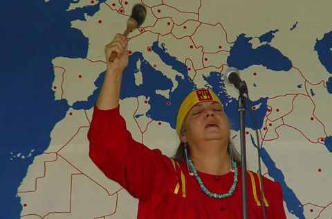 Grandmother Silver Star of the Cherokee Nation and the Lakota-Sioux Nation presided over the Native American Indian Blessing ceremony. During the segment, each of the Native American Indian Nations was named and honored with the audience echoing each name.