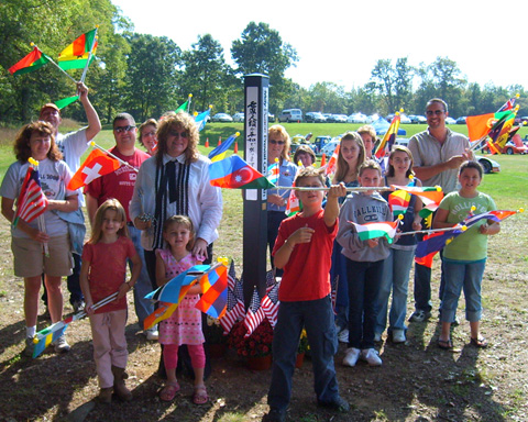 The Message “May Peace Prevail On Earth” in English, Spanish, Italian, Japanese and Braille were proudly displayed on a Recycled Peace Pole, crafted at The World Peace Sanctuary.