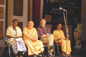 “History books will note that by the end of November, some people came by beach side in Mumbai to wreak violence while pilgrims from all over the world came to Mayapur in India to stop violence. We can achieve this by outliving them”, addressed Bishop William E.Swing on the Inaugural Ceremony of URI Global Assembly 2008. Global Assembly 2008 was inaugurated in Mayapur with people from all faiths from all over the world lighting the candles for peace. Earlier in the evening, URI Community made an offering to Mother Earth and holy Ganges seeking blessings to build more interfaith communities across the globe.