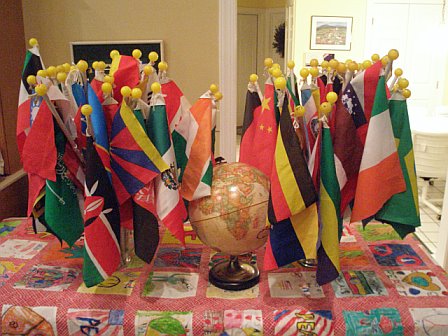 When the bombing in Gaza began, we held another flag ceremony at my house. As we prayed for the countries together, people were asked if they had a special concern or connection with a particular country. They were asked to take the flag after a prayer was offered, share their connection or concern and then place it in a special container on the table decorated with a quilt made for the Season for Nonviolence.
