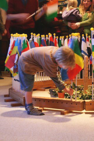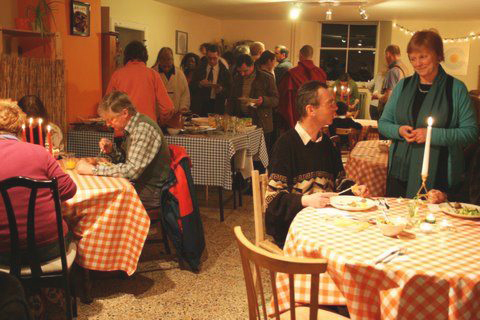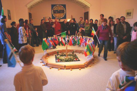 A World Peace Flag Ceremony held in the Peace Room at Allanton Sanctuary in Dumfries, Scotland to support the 2009 Festival of Middle Eastern Spirituality and Peace which is being held from February 28th to March 15th in Edinburgh. This is the fourth year that we have supported this event by having a Flag Ceremony and this year was the most successful. Allanton Sanctuary linked up with Dumfries Interfaith and Dumfries and Galloway Multicultural Association to help organise the programme. There were 50 people present including children. We started with live music, a Muslim call to prayer, a Nasrudin Story and then the World Peace Flag Ceremony in which everyone took part. Afterwards, there was a sharing of the common values in religion and a candlelit walk to the labyrinth followed by the most delicious vegetarian Middle Eastern feast. Everyone really enjoyed themselves.