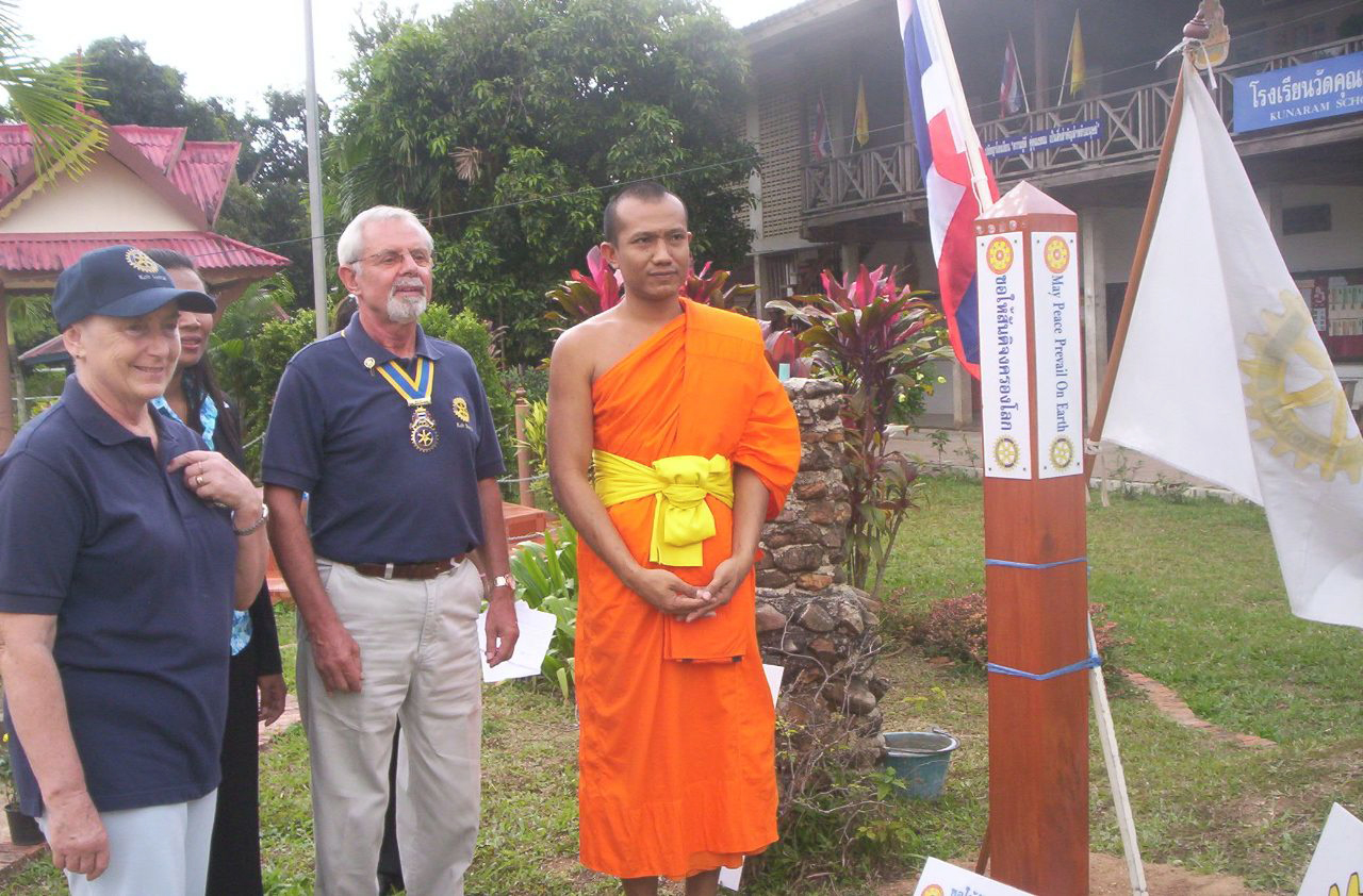 The Peace Pole was dedicated in the garden at Wat Kunaram on January 30, 2009 to celebrate completion of a major ROCKS project to expand the school’s kitchen and dining hall which feeds over 160 children here on Ko Samui, Thailand. Wat Lamai and Wat Jiang were Rotary Peace Schools 1 and 2.
