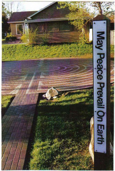 April 18, 2009 At the Peace and Carrots Labyrinth and Community Garden located at St. James’-Rosemount United Church, Kitchener, Ontario, Canada, the languages on the Peace Pole are English, Hebrew…