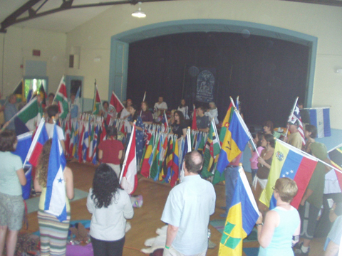 On Sunday, July 12th, staff from The World Peace Sanctuary in Wassaic, New York were invited to present The World Peace Prayer and Flag Ceremony to the participants of the 700 Voices Music Festival. Fumi Johns-Stewart, Director of WPPS, was the voice leader in the Ceremony, with assistance from by Jim Dugan, WPPS Sanctuary Manager and Ann Marie Williams, WPPS Executive Assistant.
