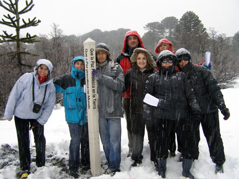 This Peace Pole was planted in Junin de Los Andes, at the foot of Mount Lanin, on the border between Chile and Argentina.