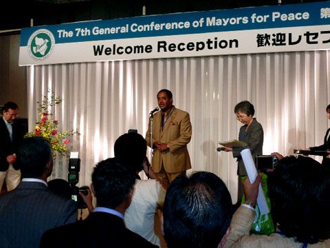 Mr. Mussie Hailu, WPPS Peace Representative of Ethiopia, was in Japan on a Peace Mission. He attended the Conference of Mayors for Peace and the Hiroshima Day and Nagasaki Day Memorial Ceremonies in the Peace Parks that are located in both cities. He graciously presented desktop Peace Poles, crafted at The World Peace Sanctuary to the Mayors and other prominent guests at the Conference on behalf of The World Peace Prayer Society.