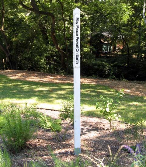 September 1, 2009 This simple Peace Pole sits in a garden where the Sligo Creek Trail meets New Hampshire Avenue.