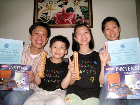 September-2008 Jeremy Ace Feliciano Ng won 2nd Place and Patricia Ann Feliciano Ng won 3rd Place in the 11th Annual Peace Pals International Art Exhibition (Ages 5-8 category). Attached is…