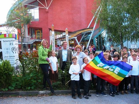 The World Peace Flag Ceremony and Peace Pole dedication took place at the Salzburgh Waldolf School in Salzburgh Germany. This year marks the 5th IDP ceremony at the Salzburgh Waldorf School.