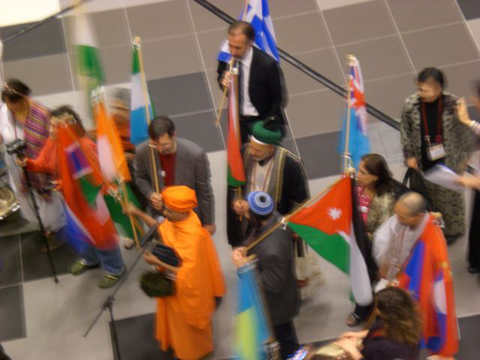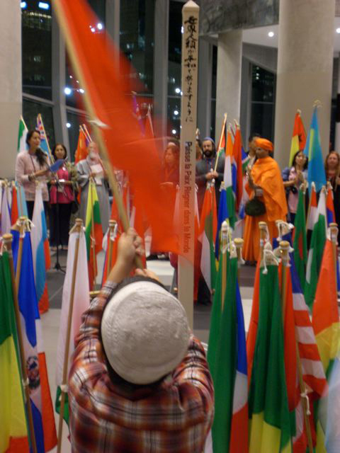 Audrey Kitagawa of the Council for a Parliament of the World’s Religions introduced the United Nations International Year of Reconciliation. Fumi Johns Stewart, Executive Director of The World Peace Prayer Society and Charles Gibbs, Executive Director of the United Religions Initiative, led the World Peace Prayer and Flag Ceremony together, dedicating the Parliament Peace Pole with representatives of different religions who came from all over the world.