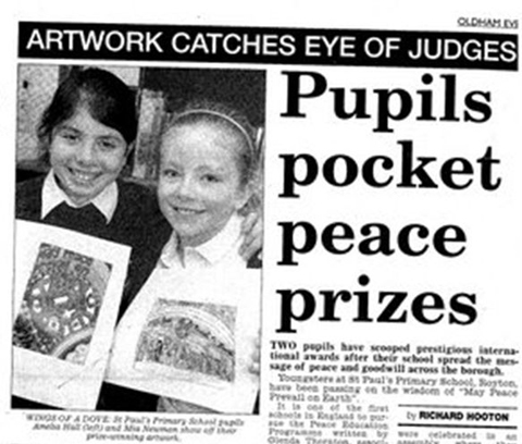 November-2009 TWO pupils have scooped prestigious international awards after their school spread the message of peace and goodwill across the borough. Youngsters at St Paul’s Primary School, Royton, have…