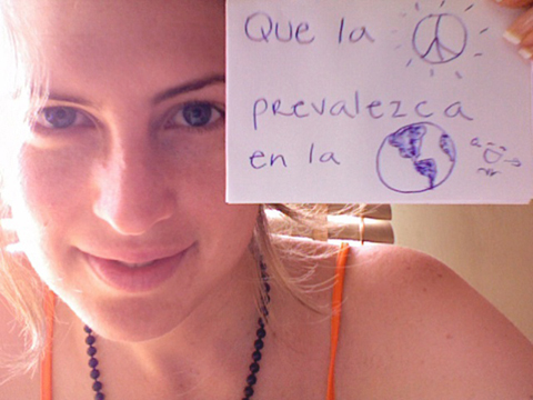 Please send us a photograph of yourself, holding up your personal “May Peace Prevail On Earth,” message in your language.