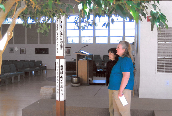 For the past 10 years, this beautiful 6-side Peace Pole stands vigil inside the Unitarian Universalist Church in Spokane Washington.