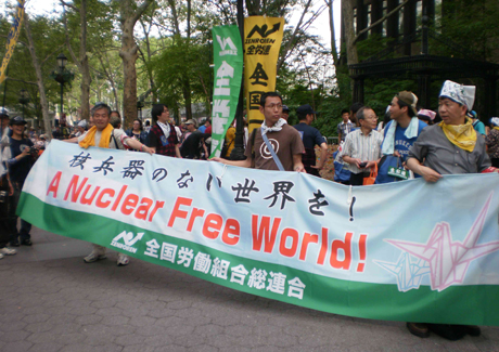 Afternoon events featured a rally for disarmament that began at Times Square, with thousands of people from around the world, including 100 survivors of the bombings of Hiroshima and Nagasaki. Participants marched for peace to the International Peace & Music Festival at Dag Hammarskjöld Plaza that welcomed them with music, the tables of many peace organizations, a tent for the Hibakusha and an area of exhibits.