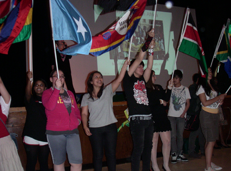 Then the students sang, “We Are the World,” as everyone waved the flags of many nations and the Peace Pole was placed in the ground. It was a magnificent close to a deeply meaningful event – truly reflective of the spirit of nonviolence.