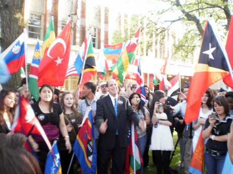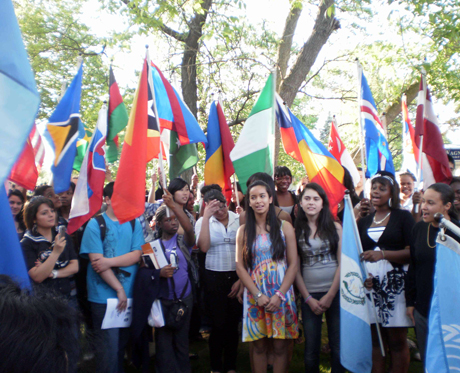 600 students from three schools gathered at Susan E. Wagner High School on Staten Island on May 6, 2010 to observe the Gandhi King Chavez SEASON FOR NONVIOLENCE in a program co-organized by the Temple of Understanding, the Association for Global New Thought, The World Peace Prayer Society and the United Religions Initiative.