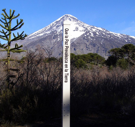 This Peace Pole was planted at the foot of Volcán Lanín in Junin de los Andes, on the border of Chile and Argentina.