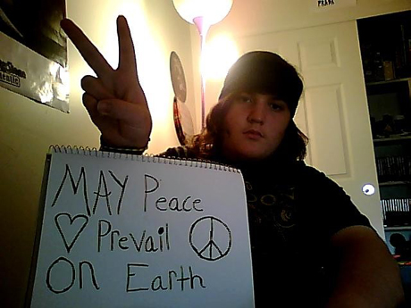August 2, 2010 Here is a photograph of me holding my written peace message, May Peace Prevail On Earth. Thanks for supporting Peace and I love you all for it.…