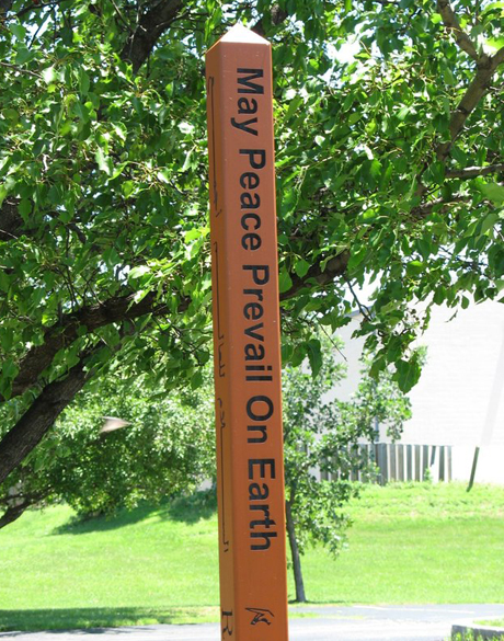 They are Peace Poles — international symbols of hope with a single message said a variety of different ways: May Peace Prevail On Earth.