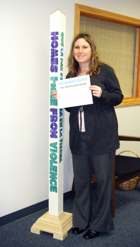 March-2011 The newest Fall River Peace Pole at The Women’s Center. Notice the colors Teal and Purple – the colors of Domestic Violence and Sexual Assault Awareness Ribbons. May Peace…