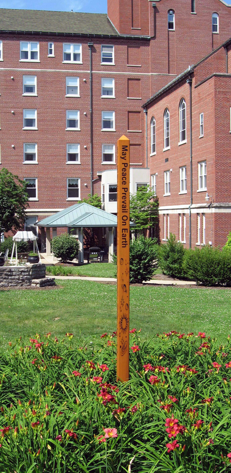 Peace Pole at the Sisters of Charity of Cincinnati Motherhouse, Mt. St. Joseph, Ohio-USA.