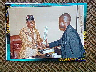 The Executive Chairman of Ukanafun Local Govt. Hon Sylvester Udokang Who is also an Ambassador of Peace in Nigeria received Peace Pole in his office from Mr Mojima Etokudo WPPS Rep. In Nigeria.