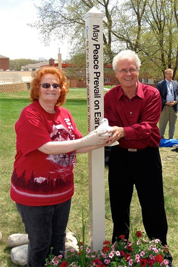 On May 16th, a Peace Pole was dedicated at Essentia Health St. Mary’s Rotary Park in Detroit Lake City, Minnesota. The idea was initiated by Rotarians of Breakfast and Noon Rotary Clubs to celebrate the 2013 International Rotary theme, “Peace through Service.” Long time friends of WPPS, Diane Jolicouer and Ed Gherke of One Heart One Mind were instrumental in encouraging the planting of the Peace Pole.