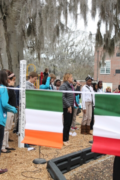 We had a dedication ceremony for our new Peace Pole at our school in Savannah, Georgia. A few notes about our school: We are a public Montessori school named ‘Charles Ellis Montessori Academy’, grades pre-K – 8th, with a socio-economically diverse student body.