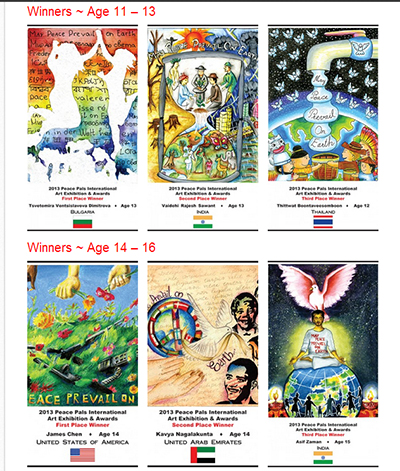 Announcing the Winners and Finalist of the 2013 ~16th Annual Peace Pals International Art Exhibition and Awards.