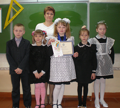 Angelina stands proudly with her classmates of Tarkhanovo Secondary School Republic of Mordovia, Russia.