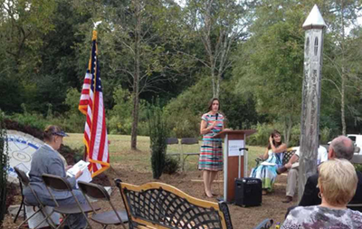 October 6th, 2014 The Rotary Club of South Forsyth, addresses the crowd Wednesday during the dedication of a Peace Pole the club installed at Fowler Park in Atlanta, Georgia.