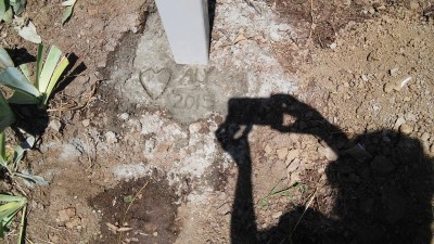 We had a lovely dedication ceremony, and instead of mixing the cement beforehand, everyone put a trowel-full of it into the hole after sharing a message of peace, if they chose to share. Then we added water and mixed it right in the hole.