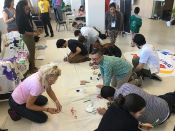 There were so many wonderful organizations and projects participating at The World Peace Forum in Brazil this year. Elephants for Peace. The elephant was chosen as a symbol because it marries power with peace. Here people were invited to paint their vision of the Elephant. The finished artwork was spectacular.
