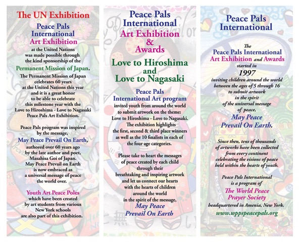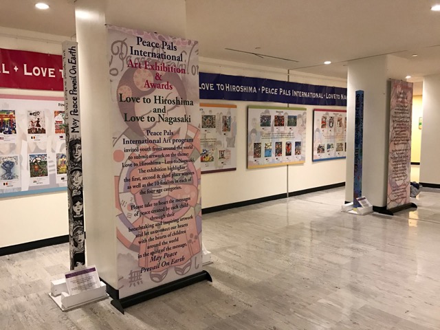 A Peace Pals Art Exhibition was hosted in the lobby of the United Nations Headquarters in New York between October 17th thought the 29th. The exhibition was made possible through the kind sponsorship of the Japan Mission highlighting the theme, Love to Hiroshima Love to Nagasaki. The Exhibition auspiciously coincided with the meetings of the first committee on disarmament held at the UN and the 2016 Week of Spirituality.