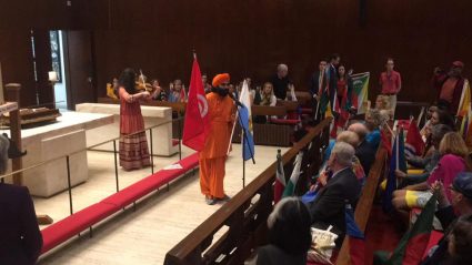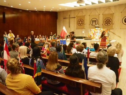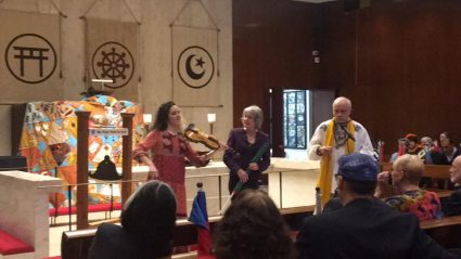 More than 100 people filled the Tillman Chapel at the Church Center for the United Nations for an event hosted by Chaplain Dionne Boissiere of the United Methodist Women and organized by the World Peace Prayer Society and the United Religions Initiative.