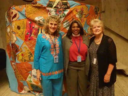 Peace Quilt with Ruth Broyde Sharone, Rev. Dionne Boissiere, Monica Willard (Photo: David Willard)