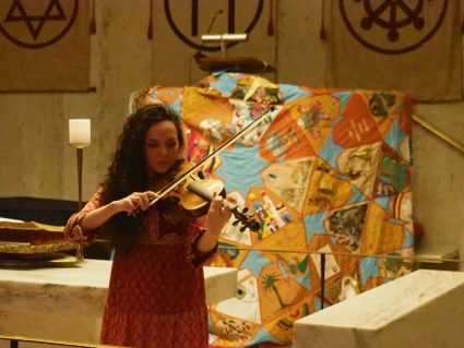 Deborah then introduced Rev. Patrick McCollum to tell the story of the World Peace Violin, hand crafted to contain fragments from around the world from places of conflict that had been healed. Patrick introduced Ms. Sasha Reed, a beautiful young violinist who would accompany the ceremony with her transcendent music.