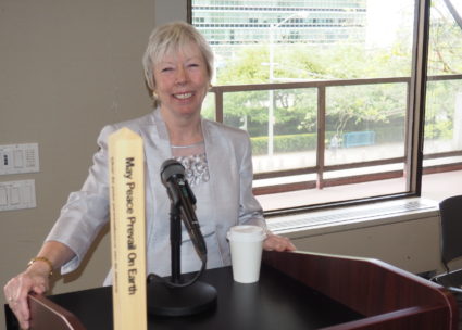 Deborah Moldow and Monica Willard hosted the event. They closed by leading the enthusiastic crowd in “May Peace Prevail on Earth.”