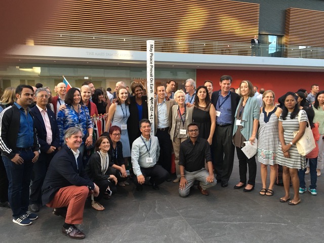 Conscious business leaders from 32 countries traveled to Cleveland, Ohio to attend the Fourth Global Forum hosted by the Fowler Center for Business as an Agent of World Benefit. The three day Forum was held June 14th through 16th on the campus of Case Western Reserve University. The World Peace Prayer Society and sister organization the Goi Peace Foundation were invited to present a Peace Pole and World Peace Flag Ceremony during the Grand Reception which was held on the last evening of the Forum.