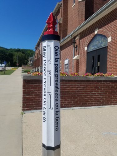 August-2017, the Peace United Church of Christ-(UCC)- located in Elkader, Iowa, has recently completed its Peace Pole.