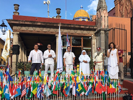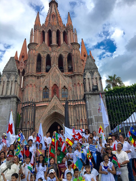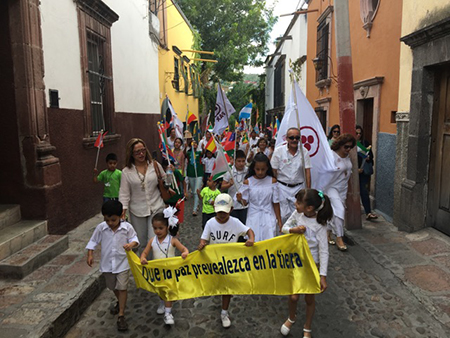 After the Flag Ceremony, youth and adults alike joined as one heart and one mind in a Peace Walk which led from the park to the Jardin center of town. The walk was led by a Nahuatl elder, youth and other enthusiastic community members who carried the flags of the world while repeating the message, May Peace Prevail On Earth and in many countries around the world. The walk ended at the world renown La Parroquia de San Miguel Arcangel, which is the current parish church of the City.