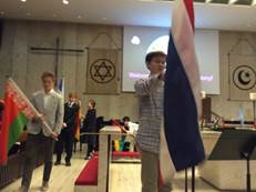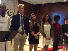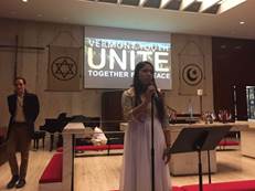 Refugee students from different countries rose to say, “May Peace Prevail on Earth” in their native languages.
