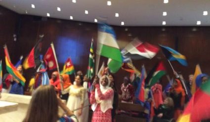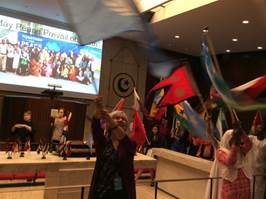 The World Peace Prayer Society partnered this year with Children of the Earth, the Vermont Refugee Resettlement Program and UNITE, organizations that arranged for a busload of 48 refugee students to attend the United Nations International Day of Peace student observance. Many of these young people from various countries were working for peace in different ways, so we offered to create a program together that would showcase the youth projects and then let the youth lead a World Peace Flag Ceremony.