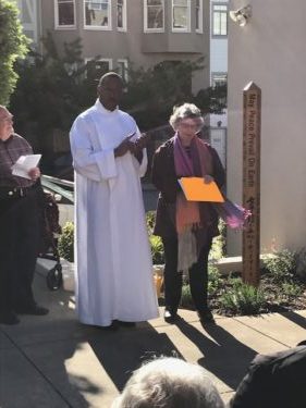 I have attached three photographs that were taken the day of our Peace Pole Dedication at St. John of God Parish in San Francisco.