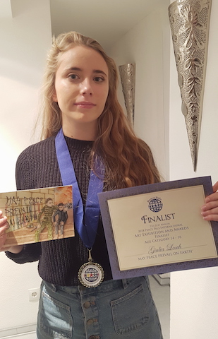 Giulia Losch of Germany was a finalist in this year’s Peace Pals International Art Competition. An extremely talented young lady with a significant message in her artwork. We are so excited to have her entry and know she has a very bright future ahead of her.