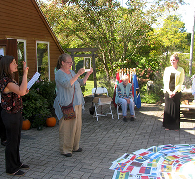 First time guests were in awe of the Flag Ceremony, the Sanctuary office and grounds including the Labyrinth in the Sacred Grove and Peace Path leading to the Ceremonial Field. The guests were from the NY Region: Manhattan, Astoria, Queens, Brooklyn, Monroe, Dover Plains, Amenia, Wassaic, Pawling, as well as from the Connecticut Region: Danbury, Sharon, Lakeville and Kent.